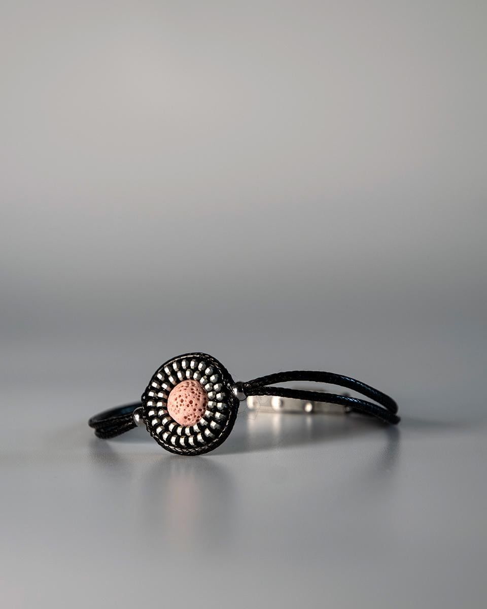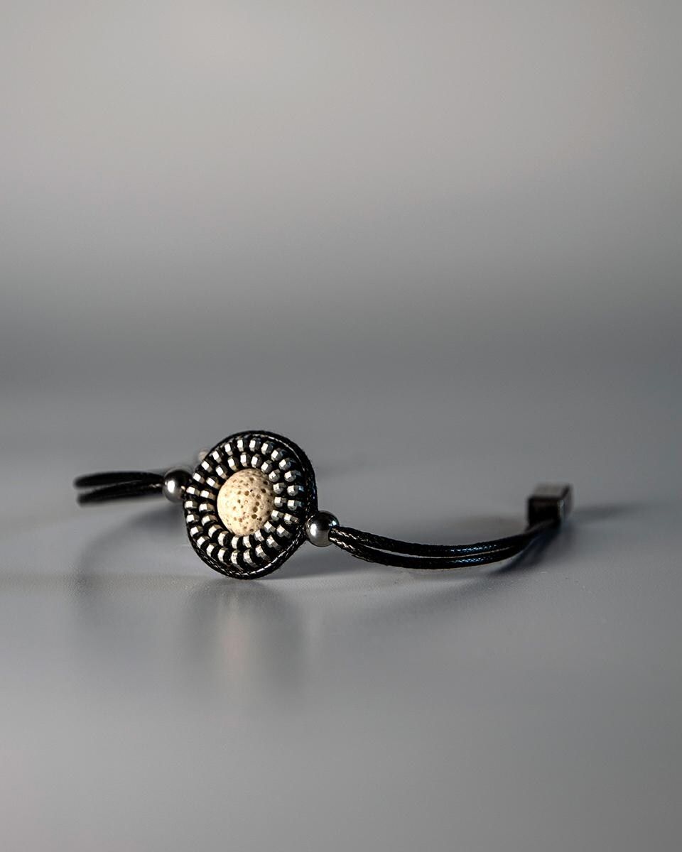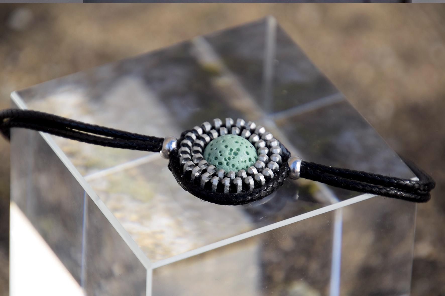 Pulsera hecha con cremallera y lava volcanica con cierre de acero