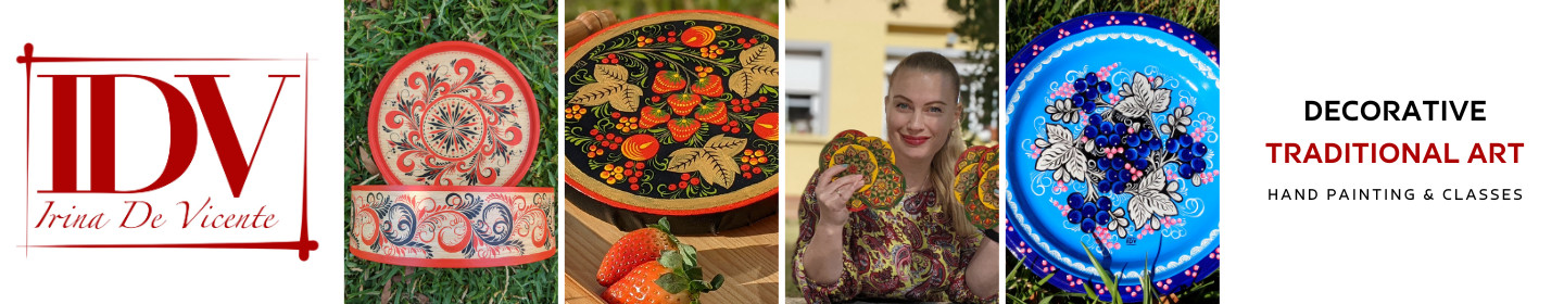 Soy Irina De Vicente - artista, diseñador de superficies y estoy especializada en docencia de arte tradicional ruso. Más de 1.000 estudiantes de todo el mundo han completado mis clases en tres idiomas (ruso, Inglés y español) sobre los fundamentos de la pintura tradicional rusa. En mi tienda encontrarás tanto mis obras como mis talleres y cursos online.